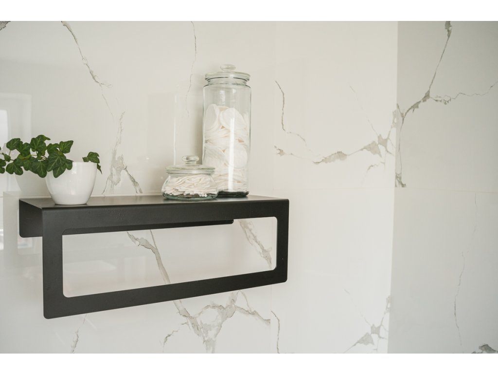 Připevňuje se na zeď nebo dlaždice pomocí 2 šroubů, které jsou součástí police.