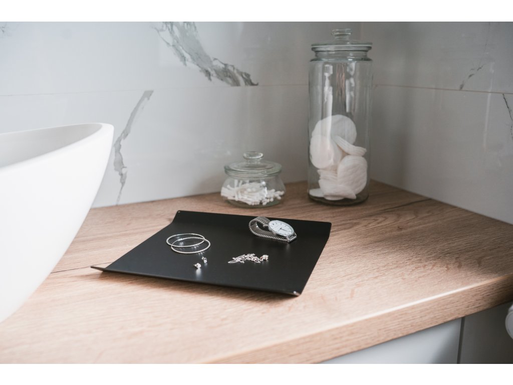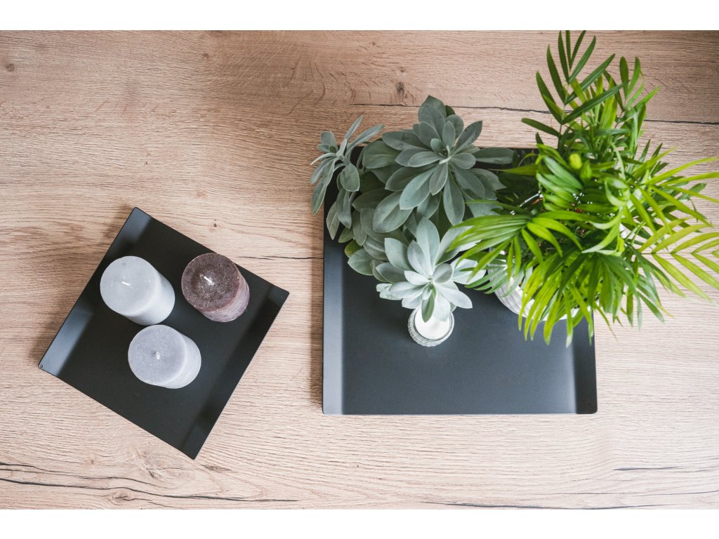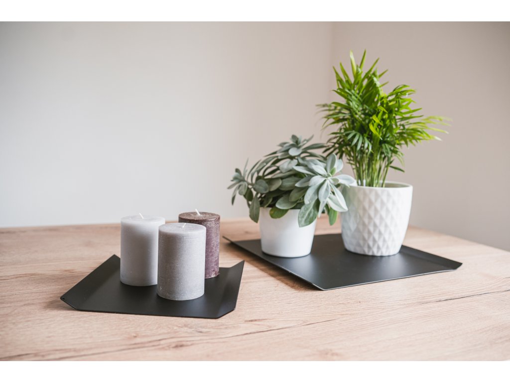 Jednodílný ohýbaný kovový podnos STOCK, který slouží jako servírovací tác i jako ozdobný tác.